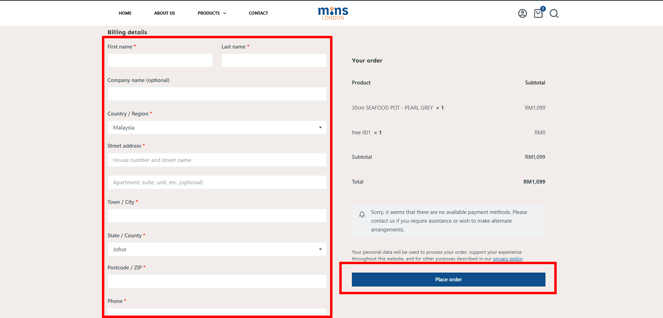 Click the "Place Order" button to continue.